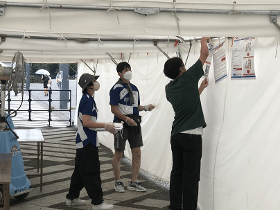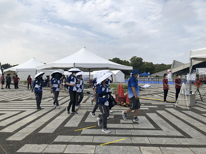 当日は、熱中症対策のため、午前、午後シフトに分け、東京2020大会時に活躍したかぶる傘、ネッククーラーを使用するとともに、頻回な休憩を挟みながら活動を行い、合計30名を超える方にご参加いただきました。