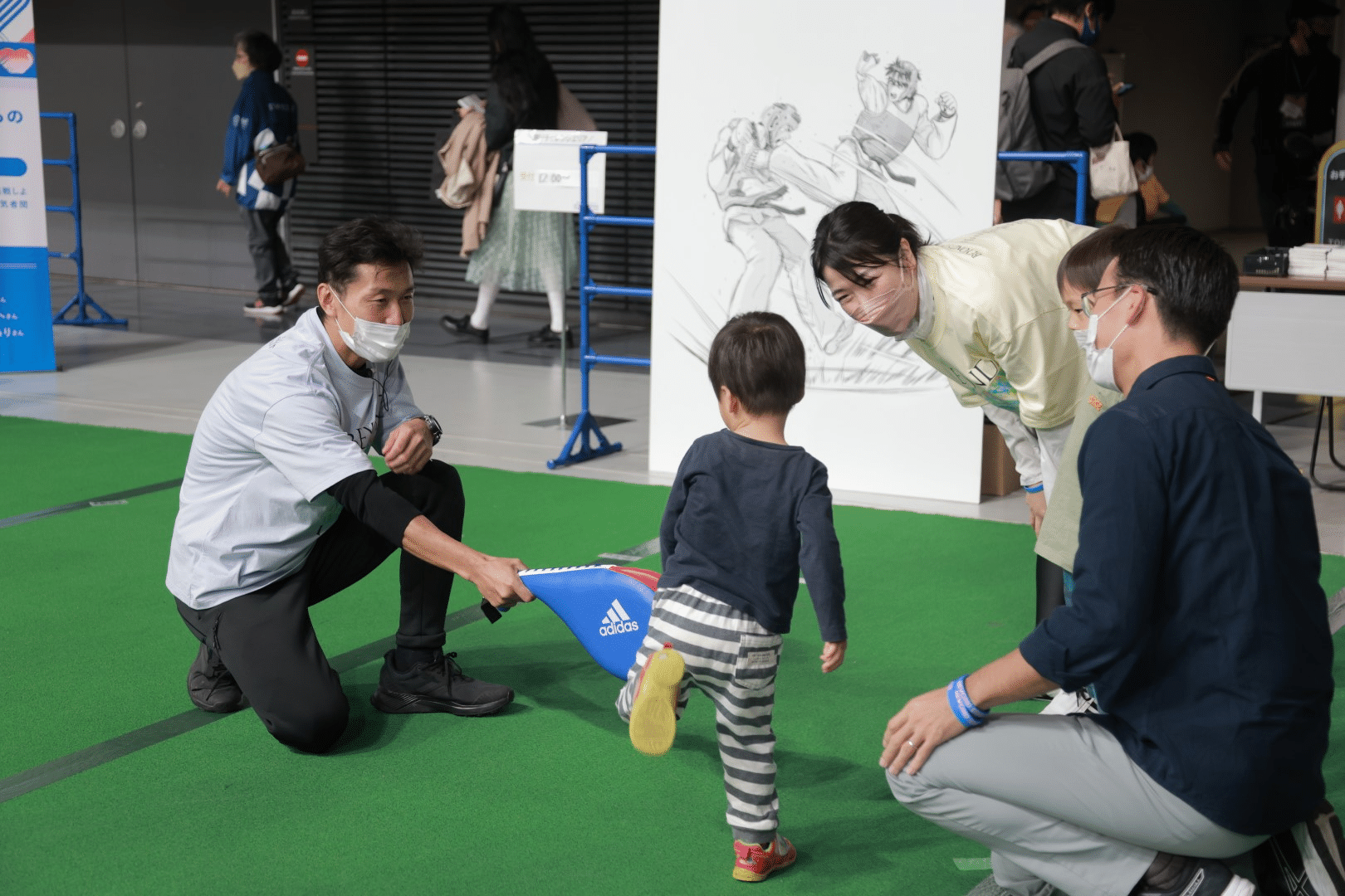 パラスポーツ体験コンテンツでは、車いすバスケットボール、ブラインドサッカー、テコンドー、卓球、陸上、ボッチャに来場者が次々と挑戦!パラアスリートやゲストも飛び入り参加し、来場者との交流を楽しんでいました。