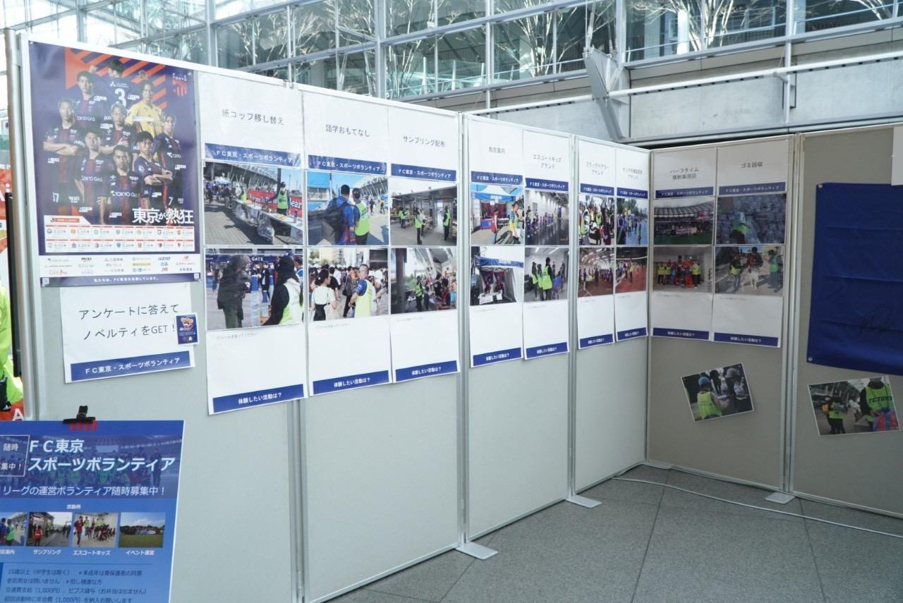 ブースではFC東京・スポーツボランティアの活動と東京ボランティアレガシーネットワークを紹介するコラボPR映像の放映や、写真をまじえて活動内容の紹介をいたしました。