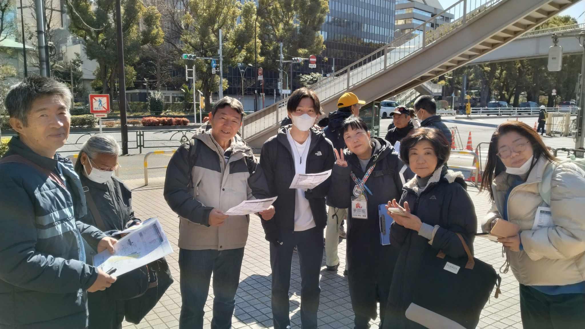 オンボラ・コミnet.では、新橋・芝エリアの5区から7区のコース管理を担当します。23日は、朝から晴天!気温も高く、日差しが私たちの活動を温かく見守ってくれました。