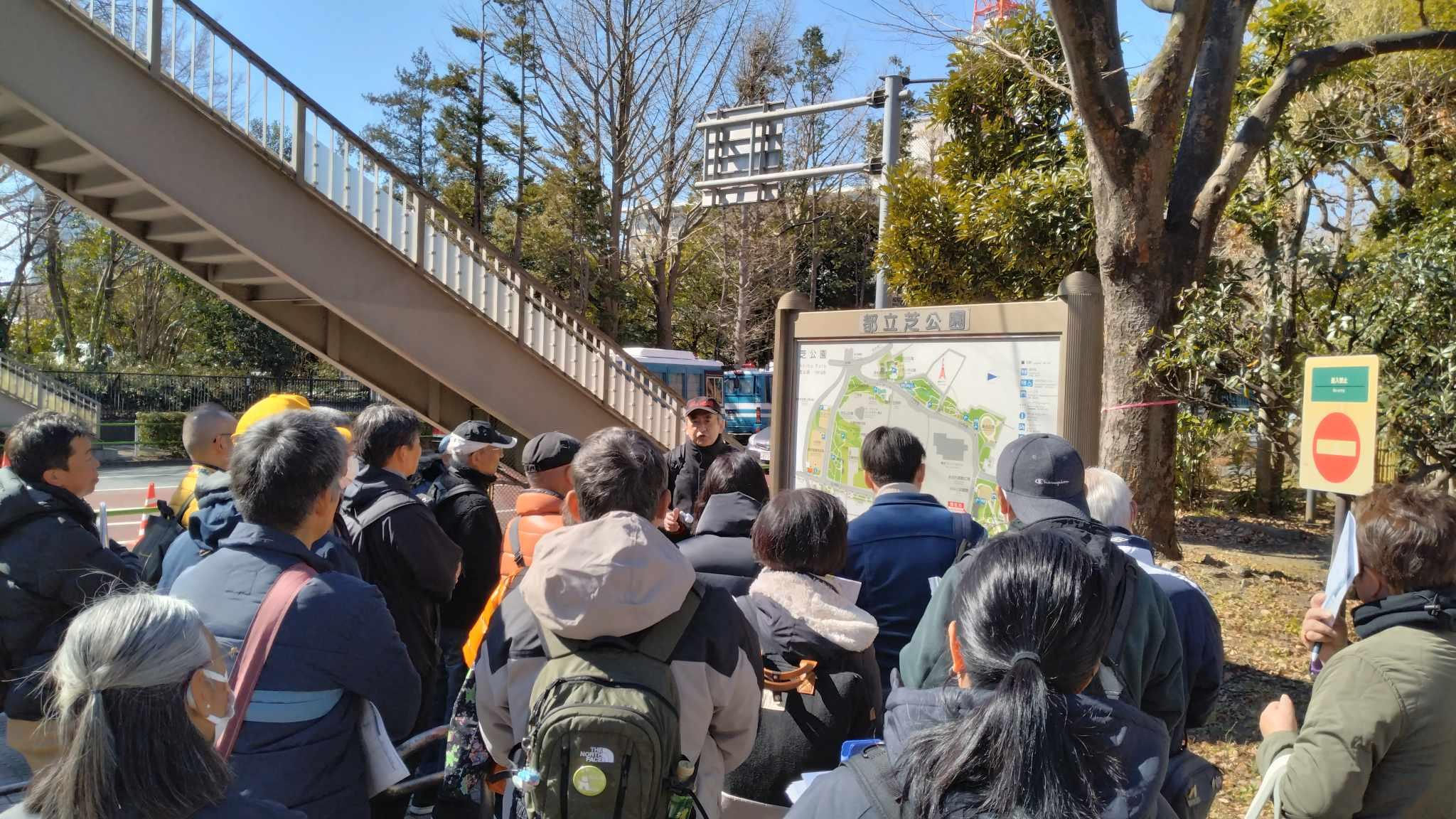 マラソンボランティアを行うだけでなく、その土地の歴史を振り返ることが出来る「オンボラ流」下見は、共同代表の澤内隆さんによるトレビアも行われ、芝公園界隈で「へー」が多く聞こえました。