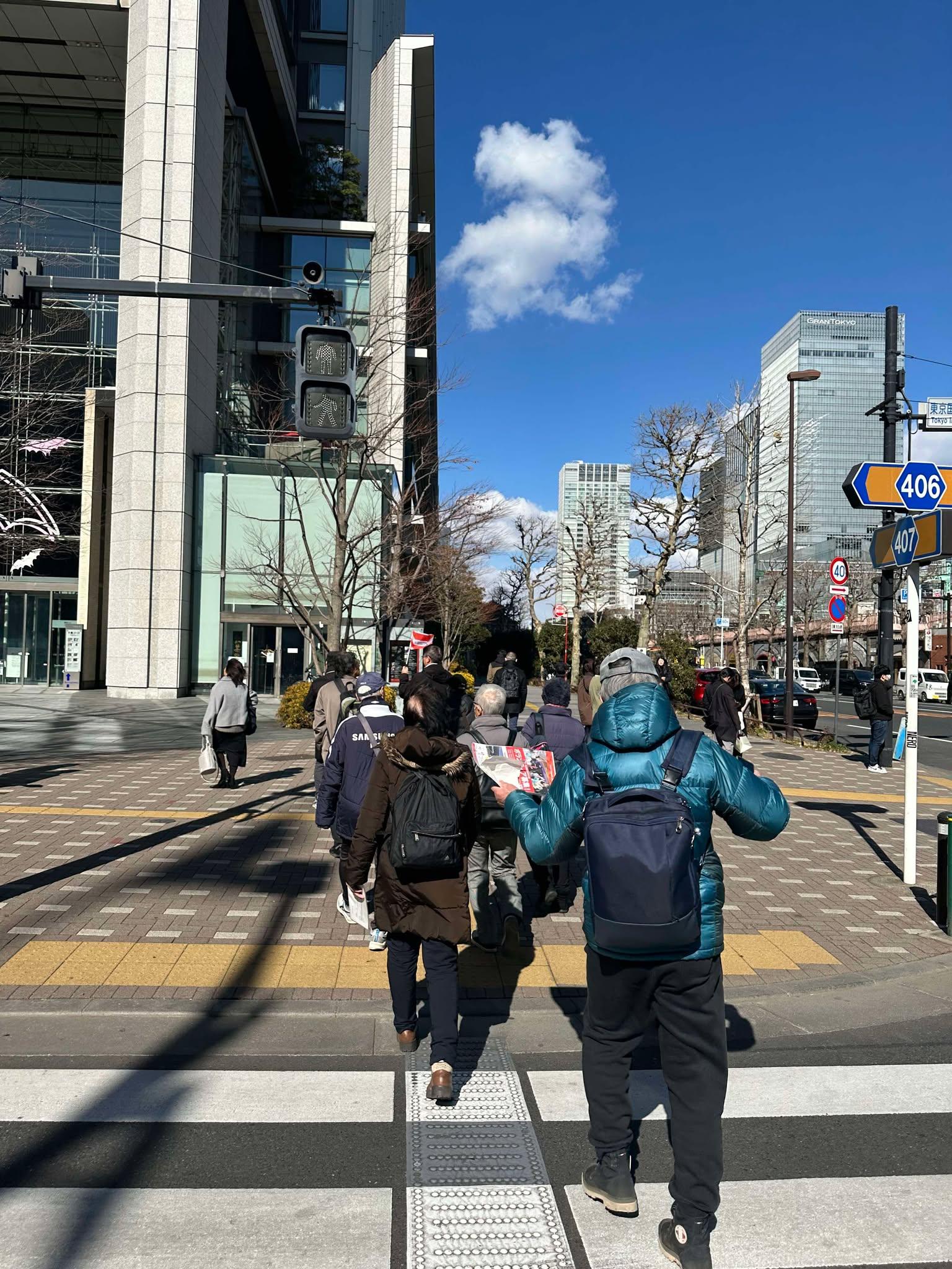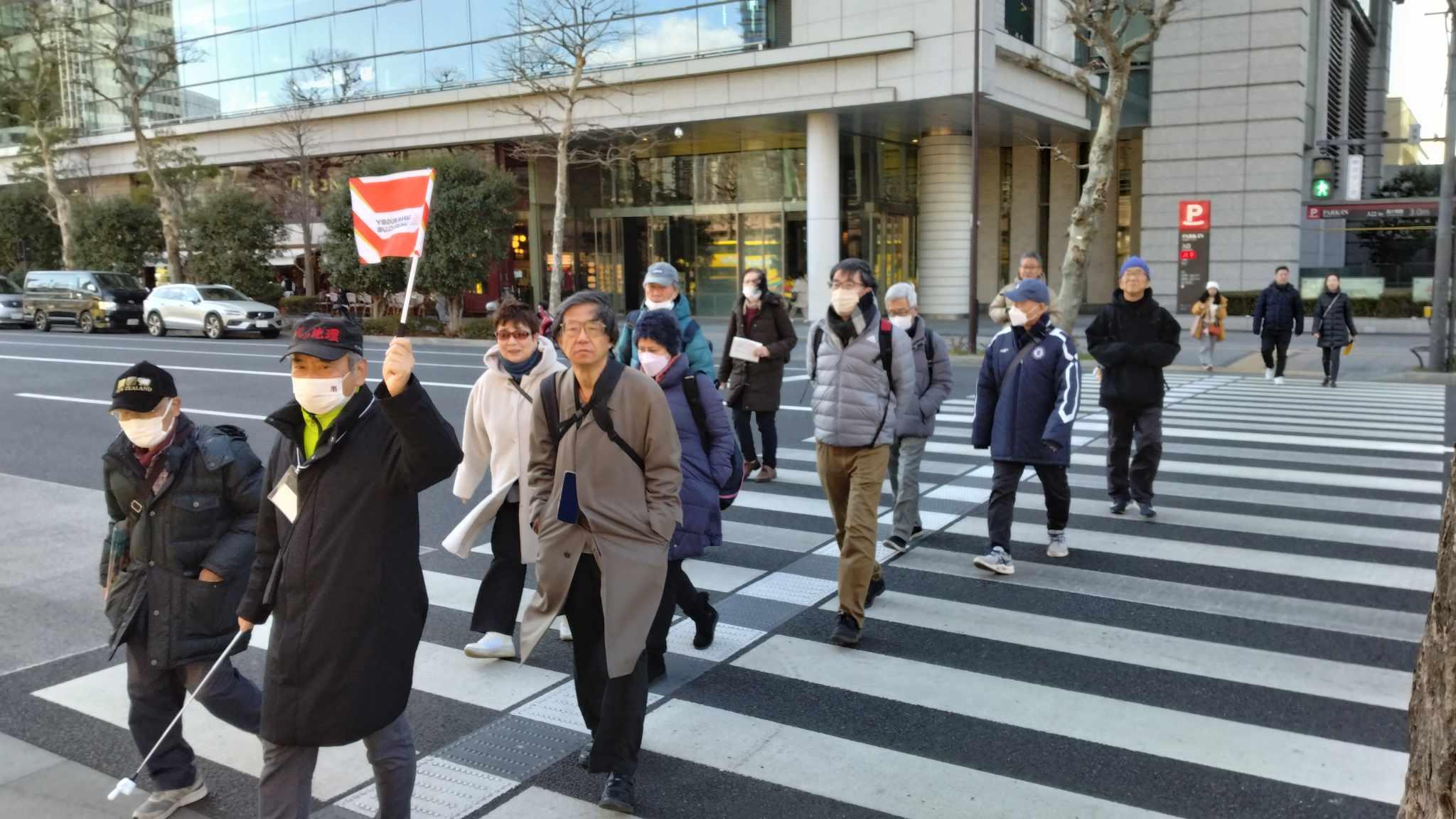 ■ワークショップ会場及び東京駅界隈街歩き企画は、「東京駅・有楽町・丸の内トレビア」のクイズをワークショップ会場で行い、東京駅界隈の街歩きをスタートしました。参加者には3月2日に開催するマラソン大会の参加者チーム「チームオンボラ」のリアル交流会としても開催しました。13:30~14:20まで、東京駅の界隈を探検することが出来ました。ナビゲーターの澤内隆さんの、バッチリクイズに沿って街歩きがスタート!太田道灌〜江戸城の解説。東京駅と相撲の関係、そして新紙幣1万円の裏に掲載されている東京駅が見える構図を訪問して、1万円札と一緒に撮影する事が出来ました。お札に映り込んでいる木の葉もリアルに確認。大変盛り上がりました。記念写真を撮りながら、1時間ゆっくり探検しました。