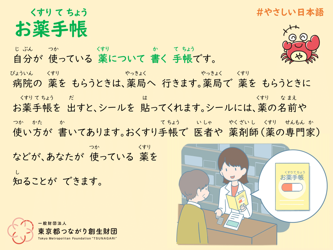 今月は「おくすり手帳」をやさしい日本語で説明しています。