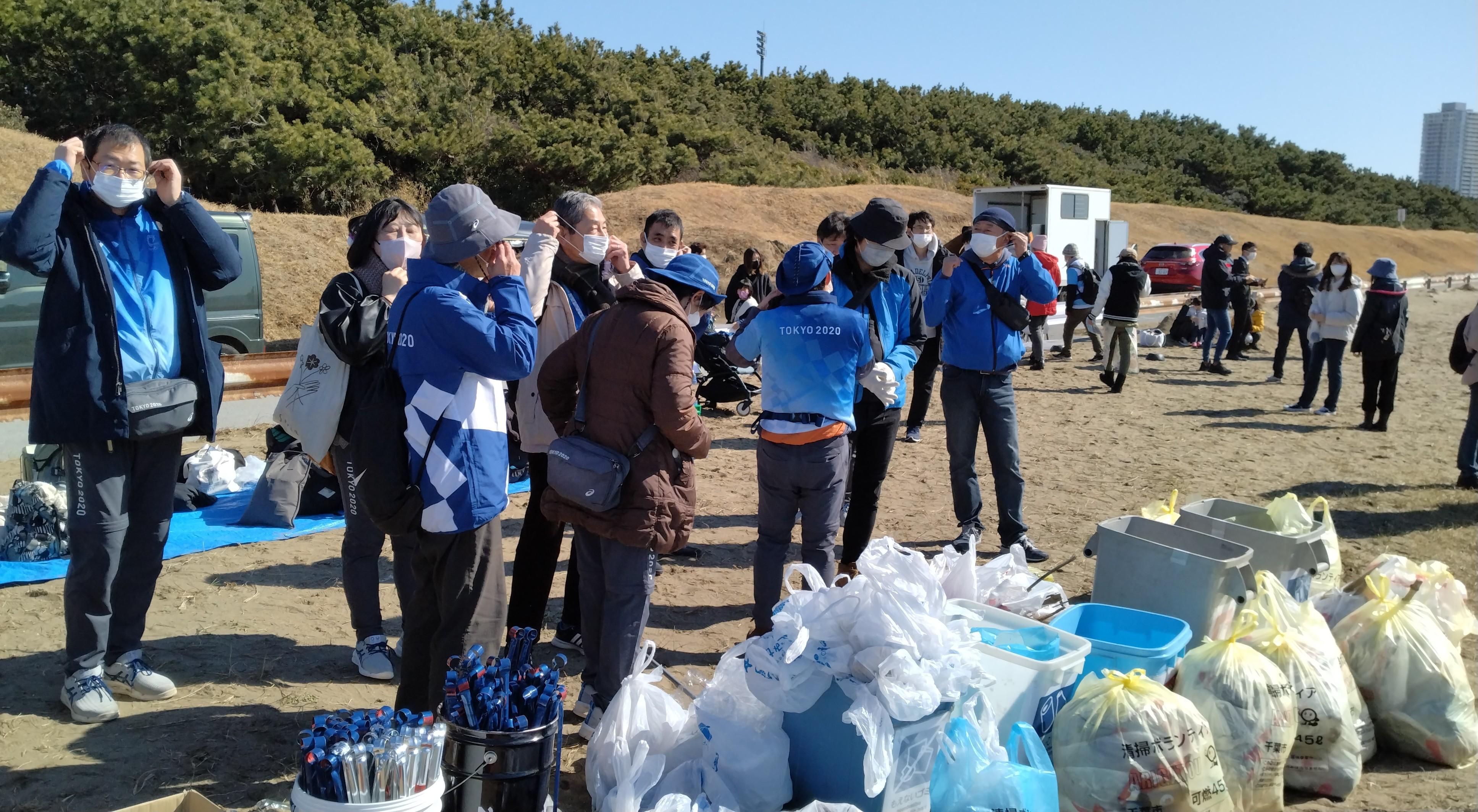 冷たい雨で中止となった1月とは違い、快晴で富士山やスカイツリーも幕張の浜からくっきり見えました。