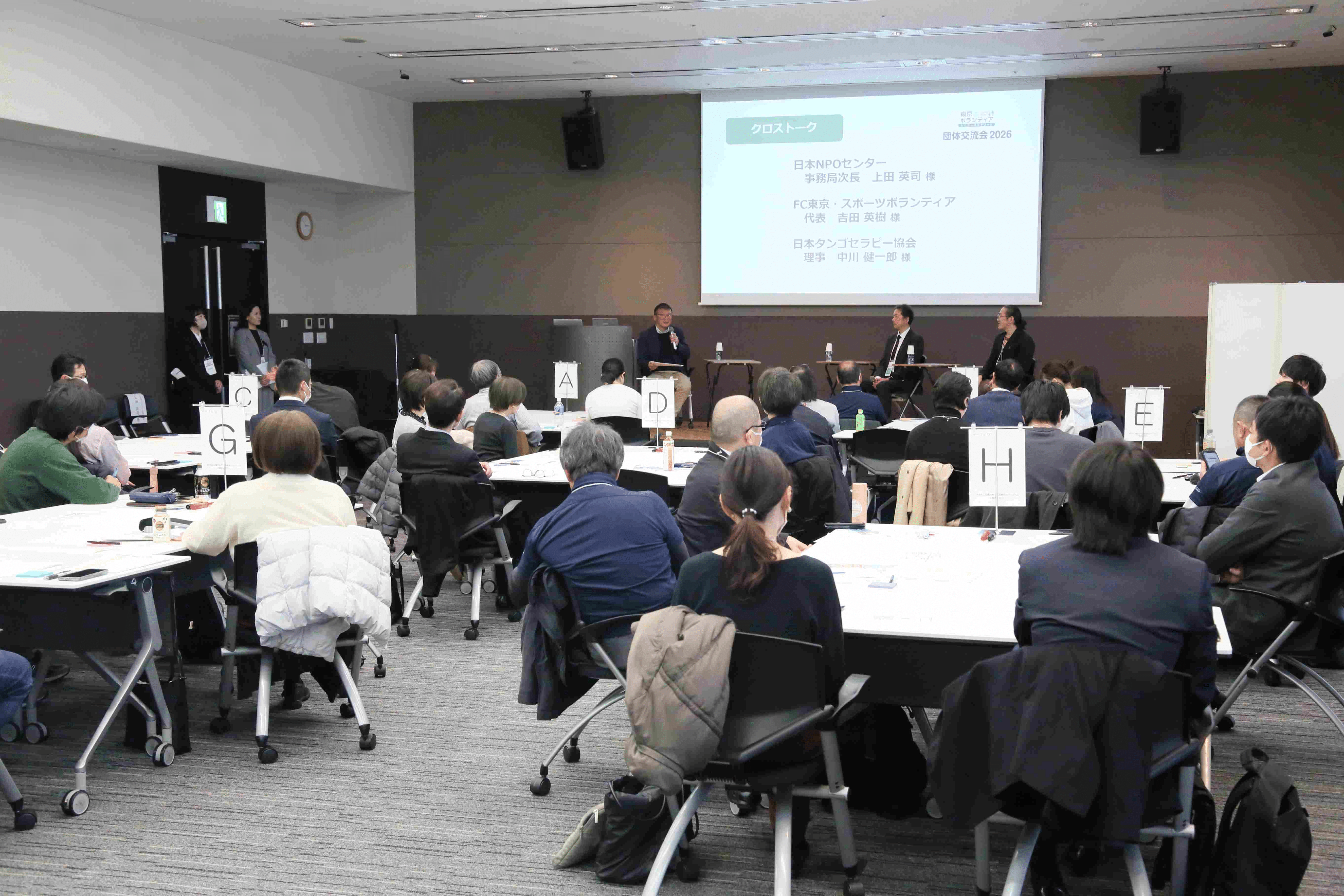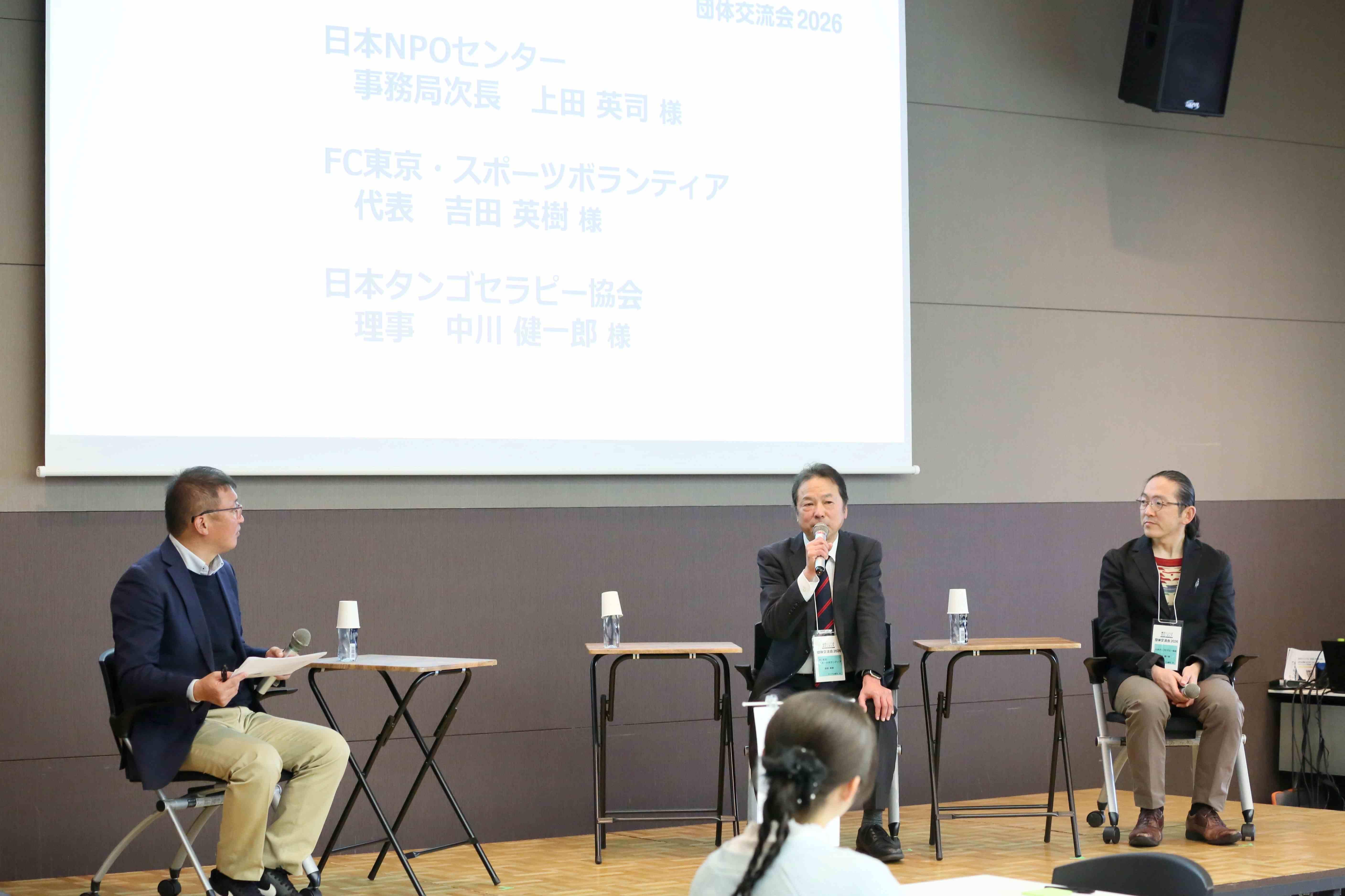 また、クロストークでは、FC東京・スポーツボランティア代表の吉田英樹さんと、NPO法人日本タンゴセラピー協会理事の中川健一郎さんにご登壇いただき、ボランティアを受け入れるための工夫、団体が抱える課題について掘り下げていきました。