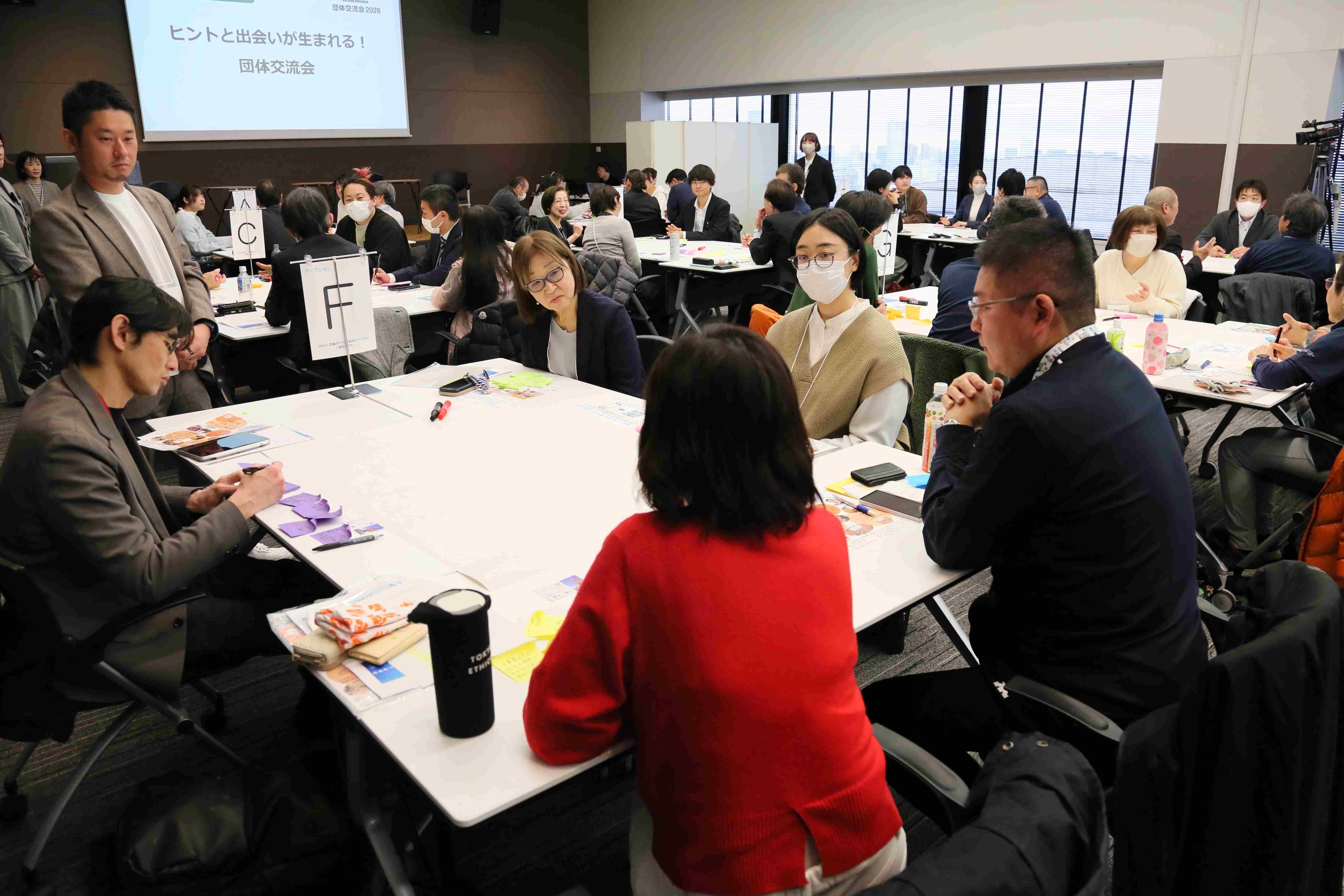 第2部では、「ヒントと出会いが生まれる!団体交流会」と題し、団体ごとに直面している課題や成果、解決のための工夫などを意見交換しながら付箋紙に書き出してもらいました。分野の異なる団体同士の意見交換を通じて、皆さん共感しながらもすぐに始められるヒントを多く得て、たくさんの収穫を持ち帰っていただけました。