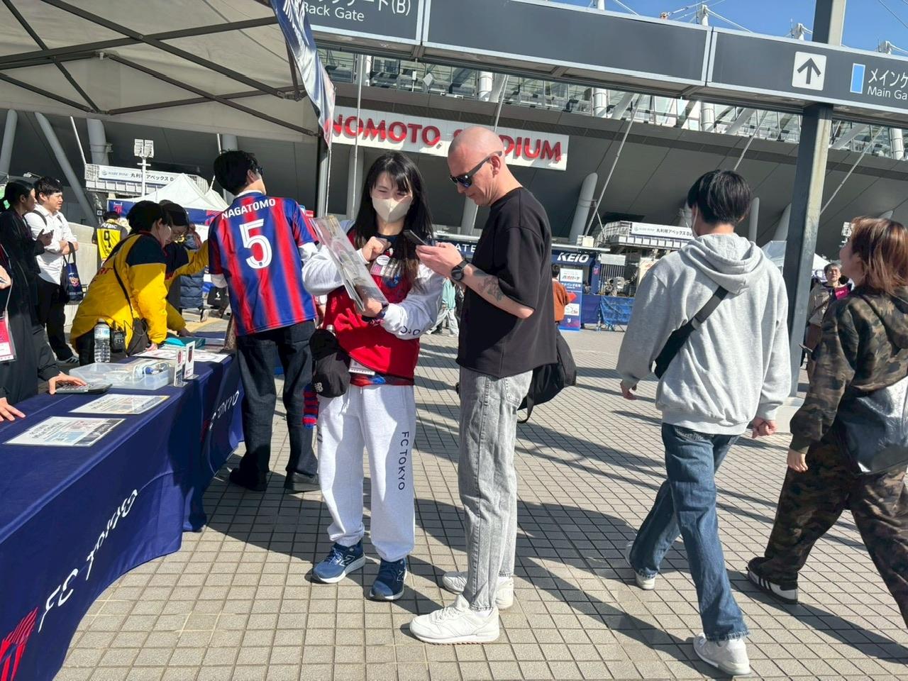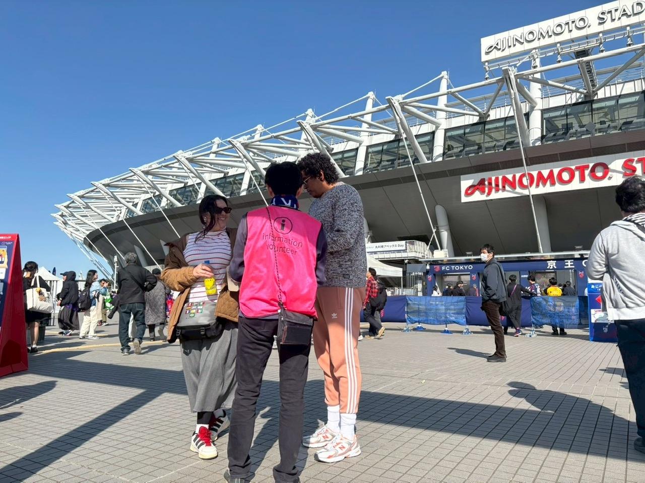 京王ゲート前でのご案内は、英語などの対応ができるボランティアを含め、多くのお客様に様々なご案内をしています。インバウンド関連では国籍はさまざまですがゲート・座席・グッズ販売場所等の問い合わせが多いです。