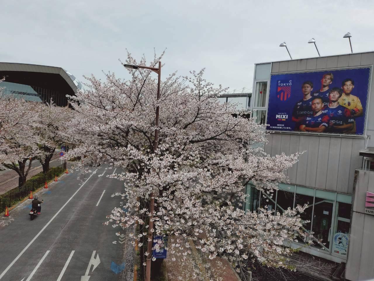 ご褒美といえば、味の素スタジアムの周辺は桜の名所でもあることをご存じでしょうか。東京の桜の満開時期を過ぎ、試合前日の強風もあり、今年は桜と試合を両方楽しむことができないかと思いましたが、きれいな桜を見ることができました。桜の開花と試合日程が絶妙に合った年のみの 楽しみを満喫することができた試合でもありました。