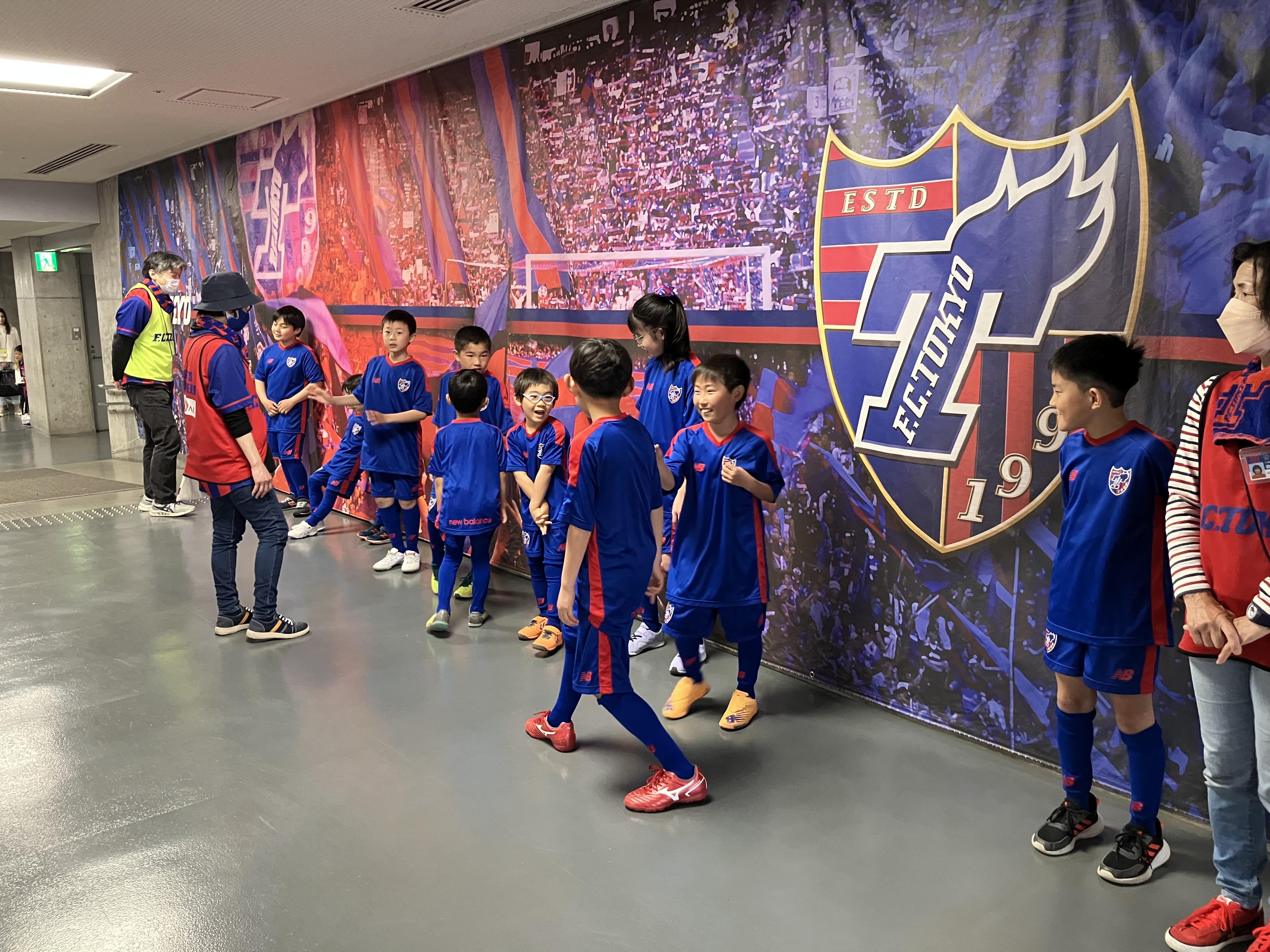 試合10分前に一列になり、選手が来るのを待ちます。その間の子供達のドキドキが伝わってきて、こちらもドキドキです。無事終わって帰ってきた子供達は、〇〇選手と手を繋いだ!繋ぎたい選手だった!緊張した〜と、嬉しそうに話してくれます。