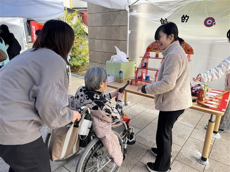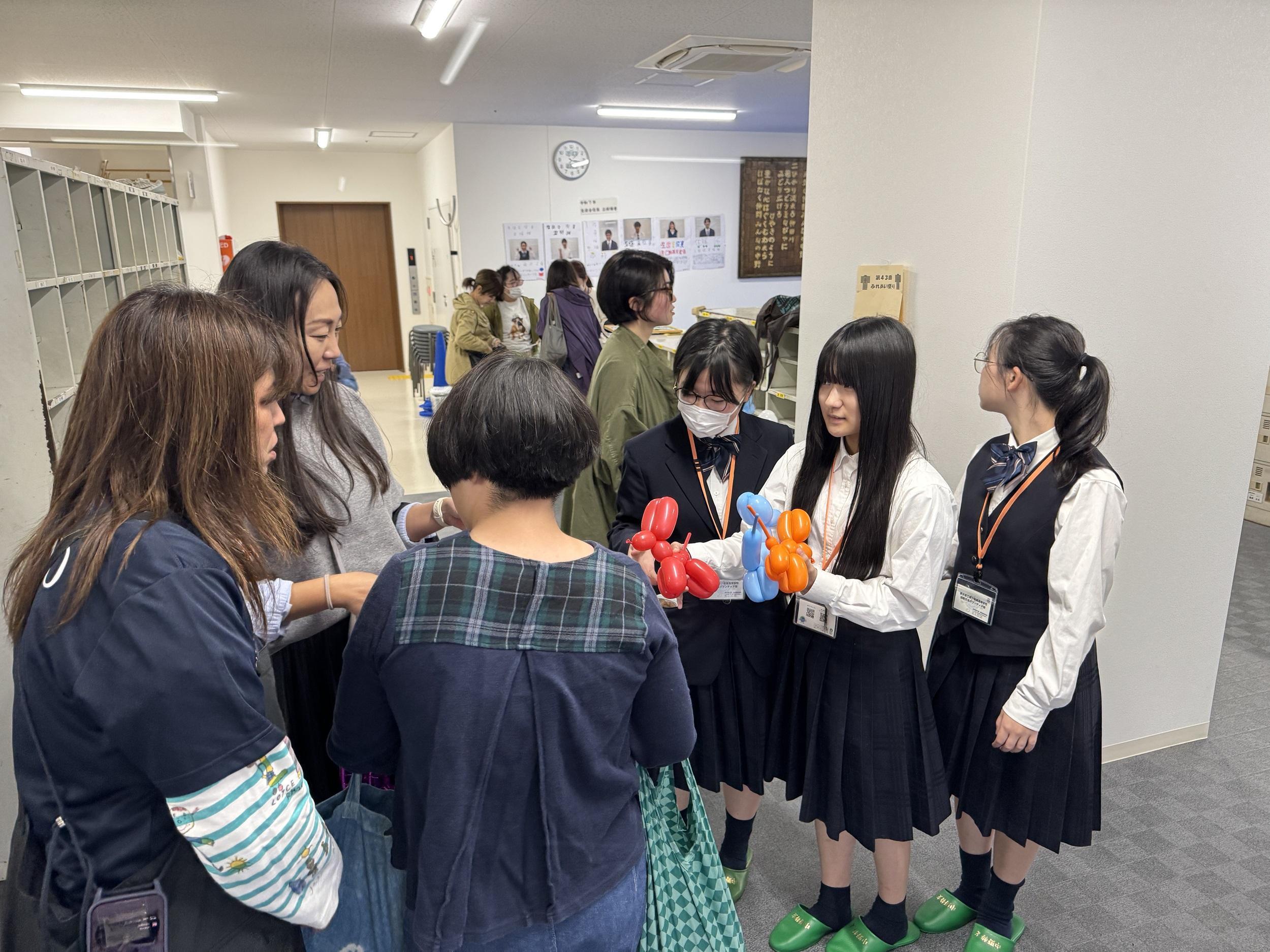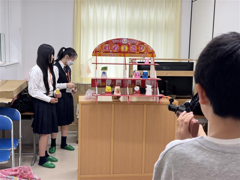 11月は、新町光陽苑の「秋祭り」に参加をさせて頂きました。ここでは、昨年度より射的のブースの運営と、利用者の皆様にバルーンのおもてなしを行いました。特に、射的では1回50円という値段の設定もあり、多くのお子様がリピートして楽しむ姿が印象的でした。複数回行っているお子様が、上達する姿を見て、繰り返し行うことで技術があがるという気づきがあったので、今後の学校生活に生かしていきたいと思う瞬間でした。
