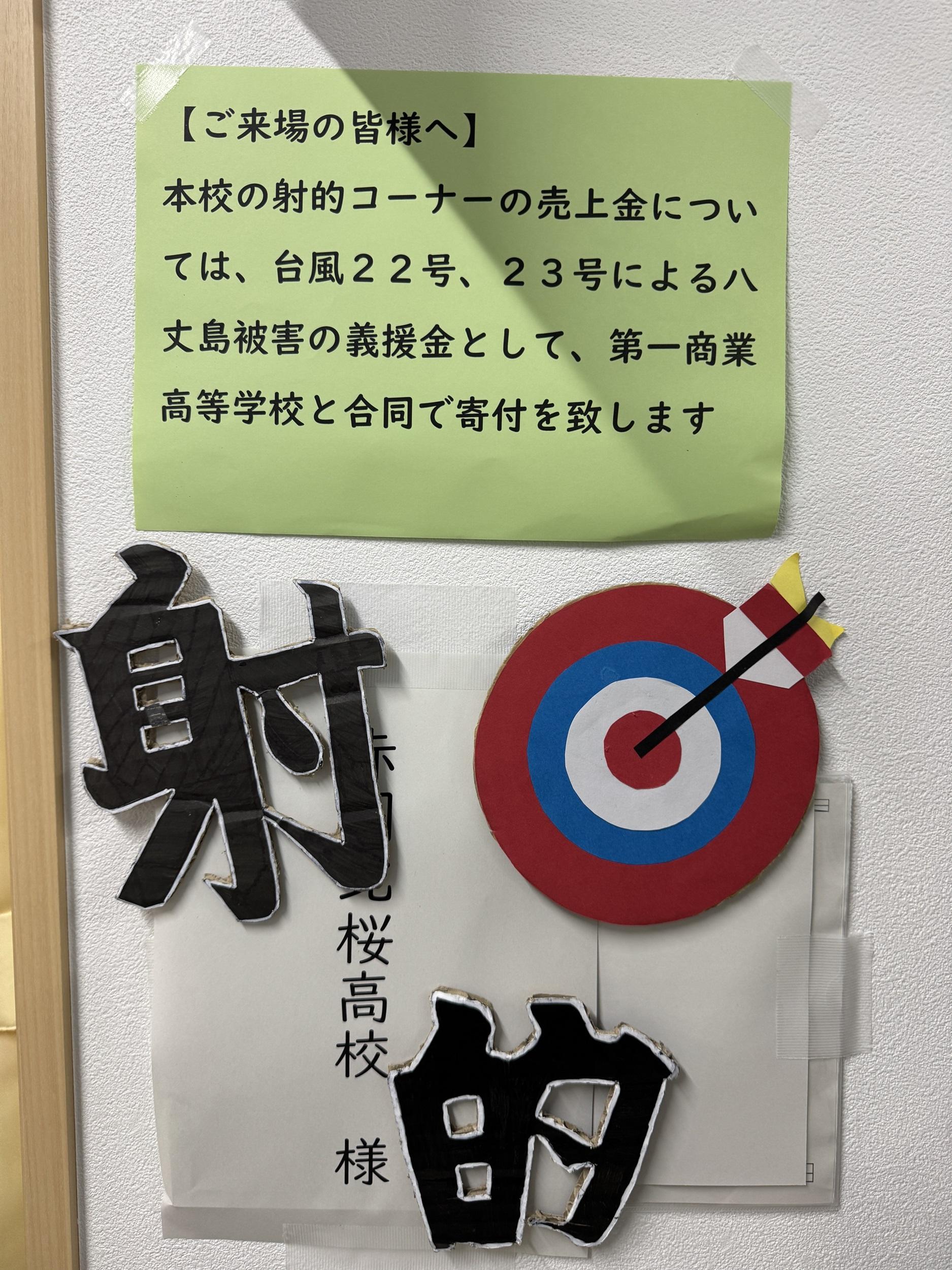 さらに、私たちと交流のある都立第一商業高等学校国際交流ボランティア部のお誘いで、都立中野特別支援学校で行われた「ふれあい祭り」に射的ブースで出店させて頂きました。この日は、午前中が授業公開であったため、午後からの1時間のみの出店でしたが40組以上の方に楽しんでもらうことができました。中には、的を射るのが上手な方もいて、私たちも驚きと笑顔いっぱいの楽しい一時を過ごさせて頂きました。ここでの売り上げ金は、全額、台風被害にあわれた、八丈島の復興の義援金として第一商業高校の皆さんと合同で寄付をさせて頂きました。この度の台風災害により被害に遭われた皆様に、心よりお見舞い申し上げます。一日も早く安心して過ごせる日が来ますよう、心よりお祈り致します。