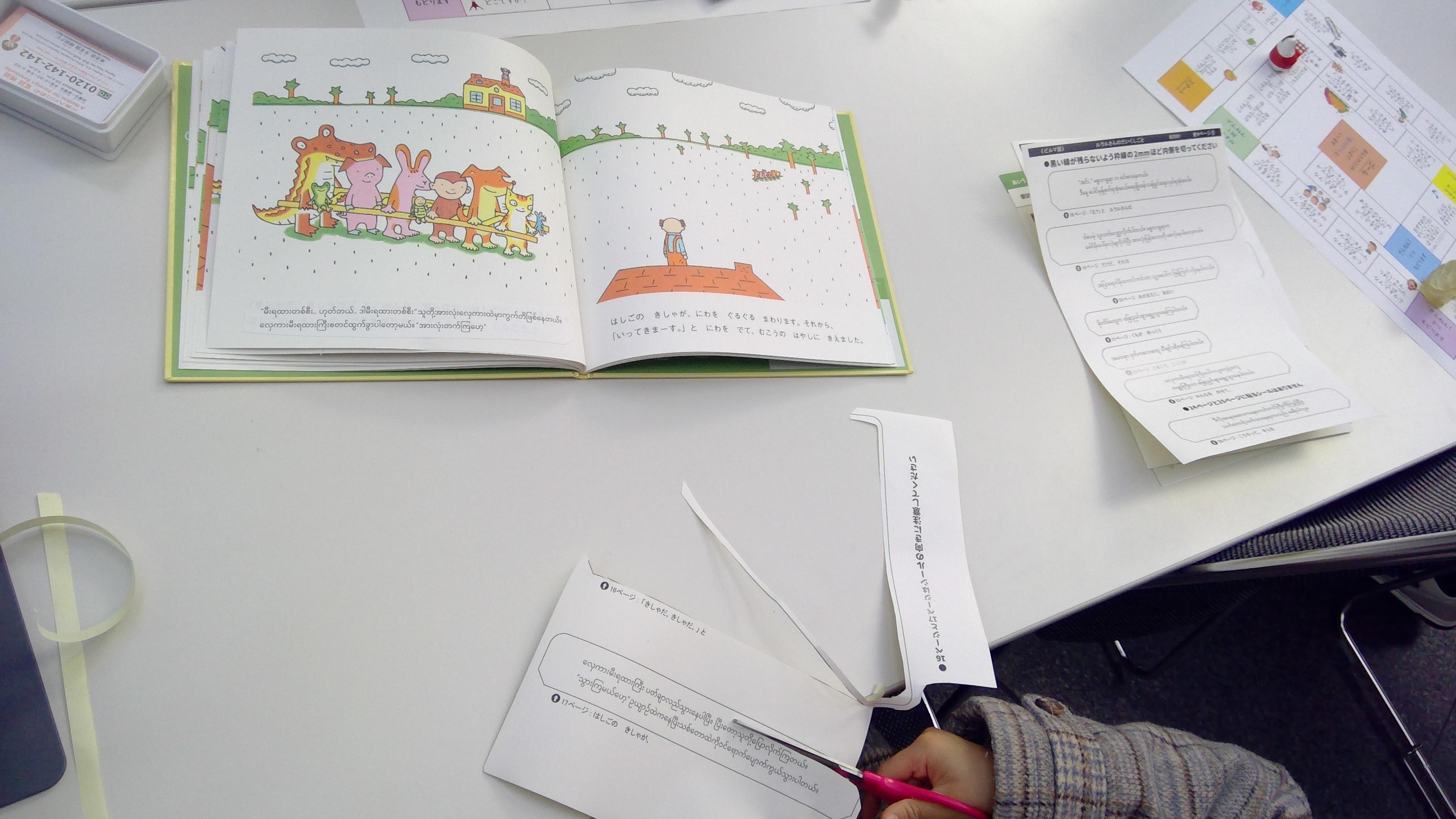 (※「絵本を届ける運動」は、日本のボランティアさんの参加により絵本に翻訳シールを貼りつけ、アジアの国の子どもたちに送る取り組みです。)