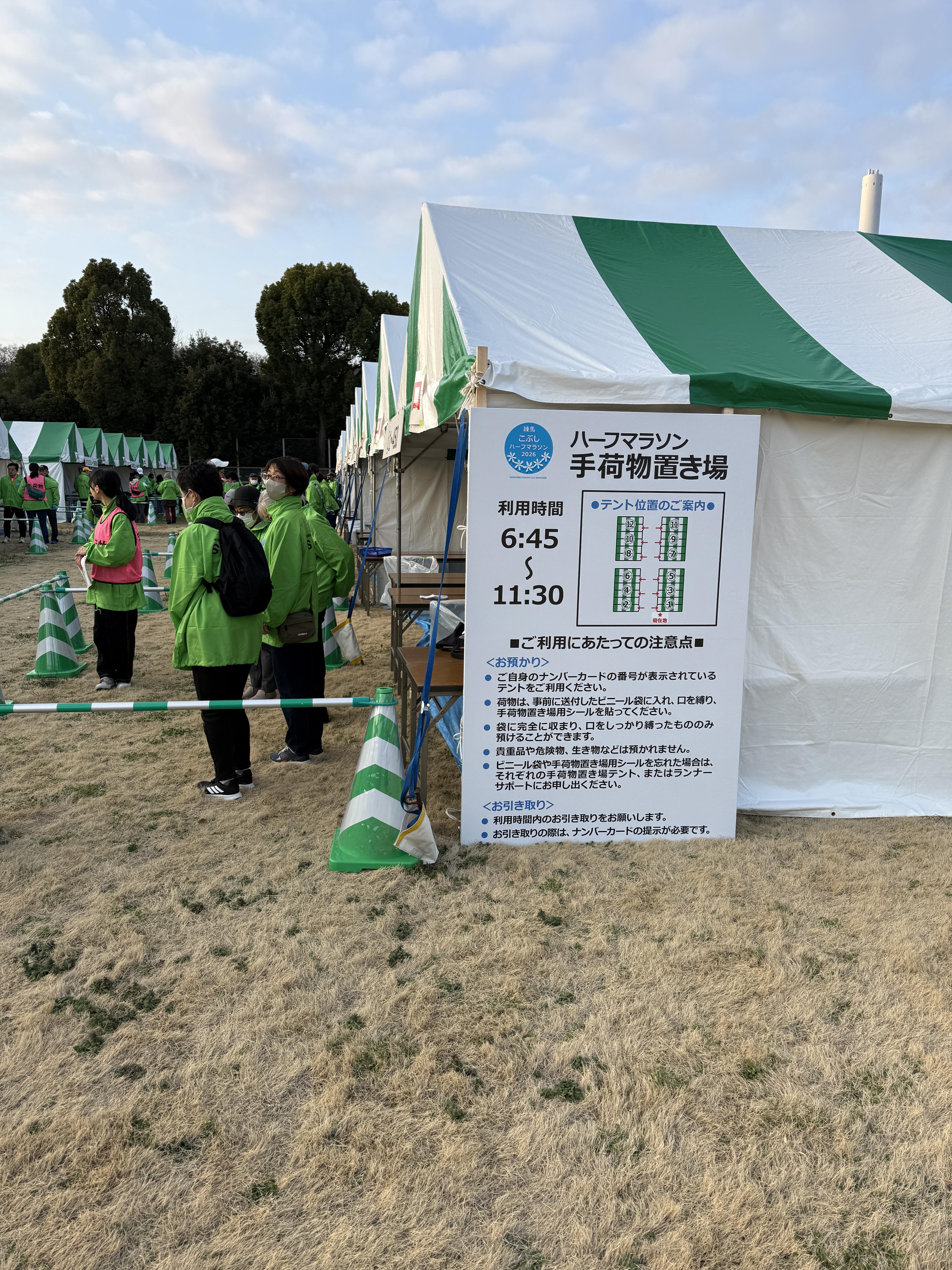 特に受付は無く手荷物ボランティアのテントでジャンバーと