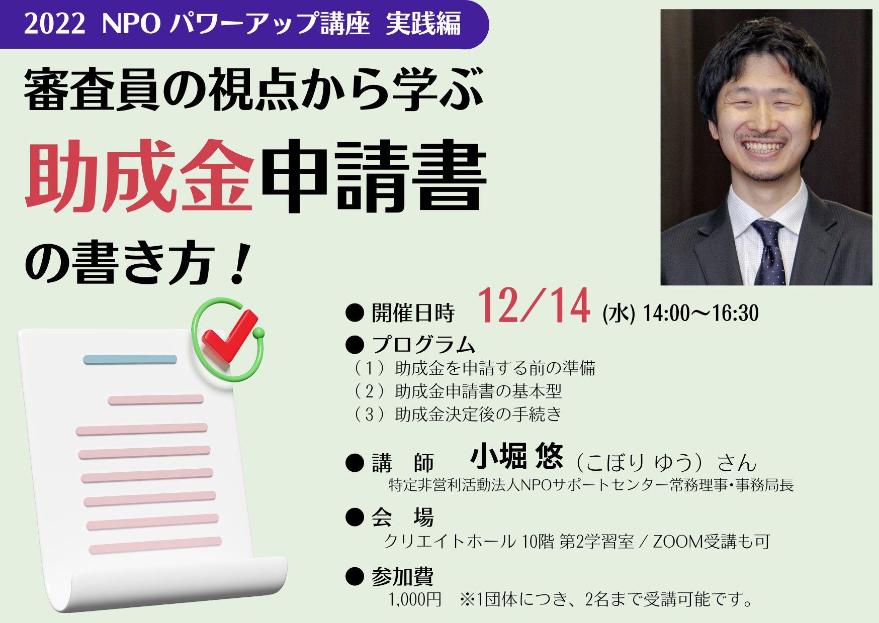 【NPOパワーアップ講座】 審査員の視点から学ぶ「助成金申請書の書き方」