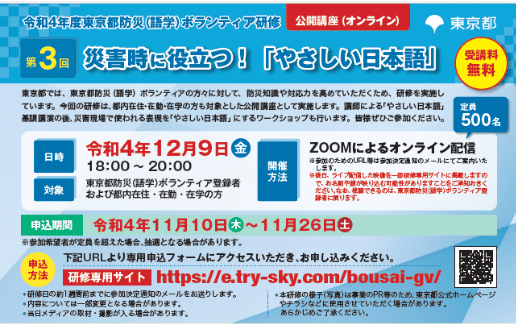 東京都主催の「災害時に役立つ!『やさしい日本語』」をオンラインで受講しました