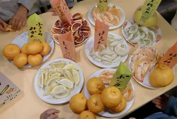 愛媛の支援者から差し入れられた柑橘類をみんなで食べ比べて、人気投票するイベントも