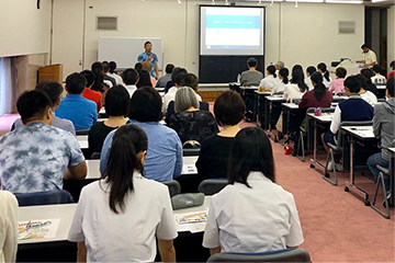 但野さんは今回、初めてビデオ会議ツールを使った研修会を開くにあたり、他の団体が主催するオンラインセミナーの運営の仕方を参考にして、本番に臨みました。「いろいろ受講してみたところ、Zoomが一番音声がクリアに聞こえて、一人一人の表情も見やすいと感じたので、私たちもZoomを使うことにしました。マイクとイヤホンは、やはり必須ですね。その上で、見栄えという点ではライティングもあるといいかもしれません。また、PowerPointのような資料を投影しながら講義を進める場合は、事前に参加者のみなさんにパソコンでの参加を呼びかけておくことも重要です。会話だけで進める講義ならスマートフォンやiPadでもいいのですが、パソコンの画面の方が大きくて資料を共有しやすいですから」