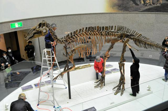 恐竜も正月の準備 豊橋市自然史博物館で骨格標本や模型の大掃除