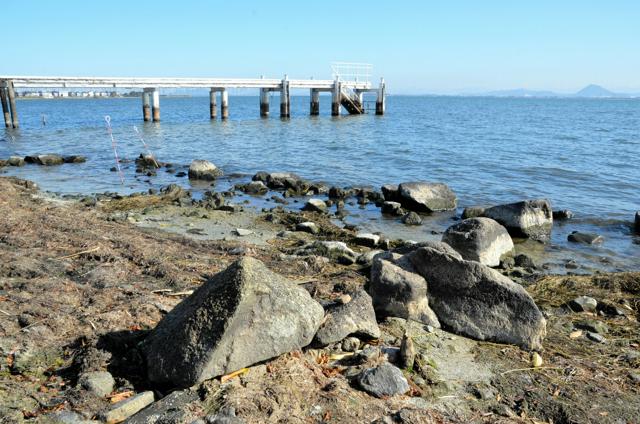 光秀が築いた幻の城 坂本城の石垣が姿を現す 琵琶湖の水位低下で