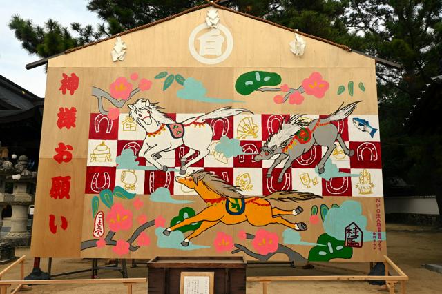 白鳥神社にジャンボ絵馬、来年の干支「午」が躍動 香川県東かがわ市