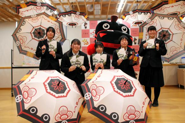 福島県三春町にある県立田村高校の生徒たちが、郷土玩具の三春駒を題材にした雨傘と、JR磐越東線の観光マップをデザインした。その出来栄えに感心した町は、実際に傘とパンフレットを作成し、2月27日にお披露目会が開かれた。