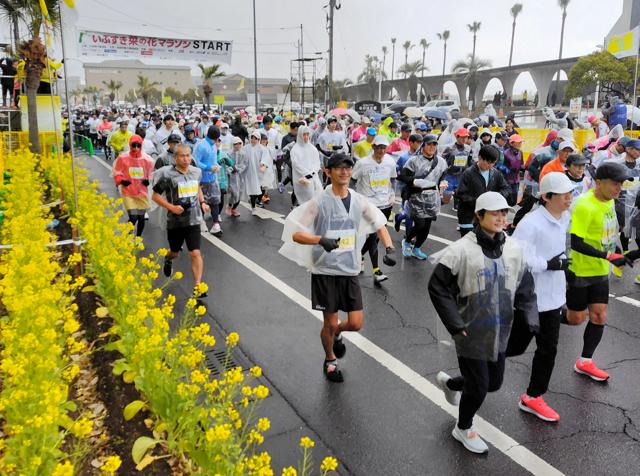 早春の指宿路、8800人駆ける 菜の花マラソン大会