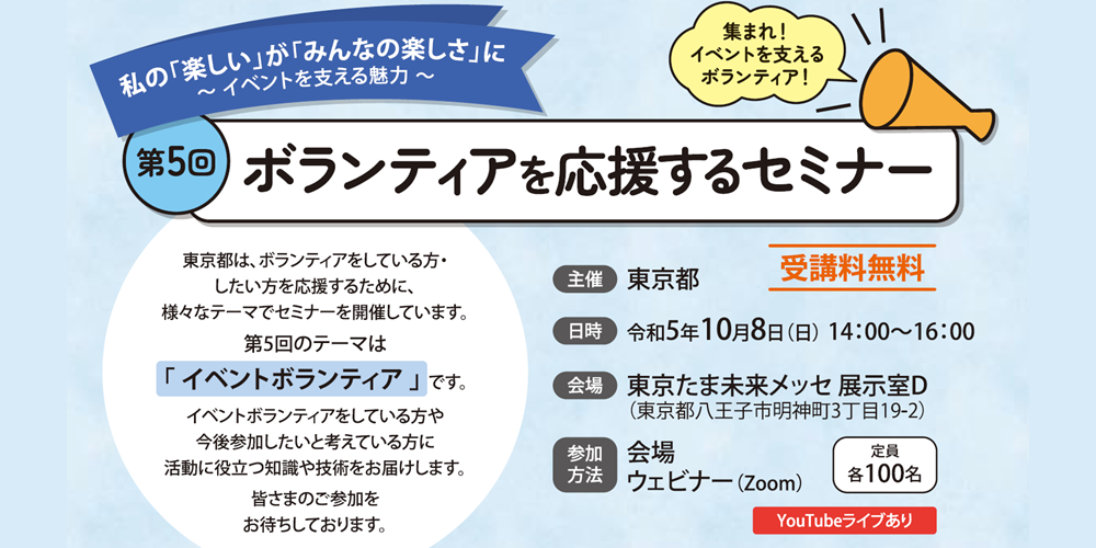 東京都主催「2023年度ボランティアを応援するセミナー」のアーカイブ動画を公開中です!